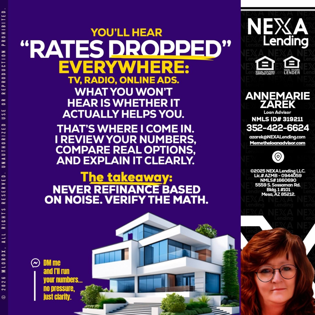 RATES DOPPED - AnneMarie Zarek -Mortgage Loan OriginatorHi, my name is AnneMarie Zarek. I’m a Loan Officer with NEXA Lending LLC., offering personalized mortgage solutions, fast customized quotes, great rates and service with integrity.