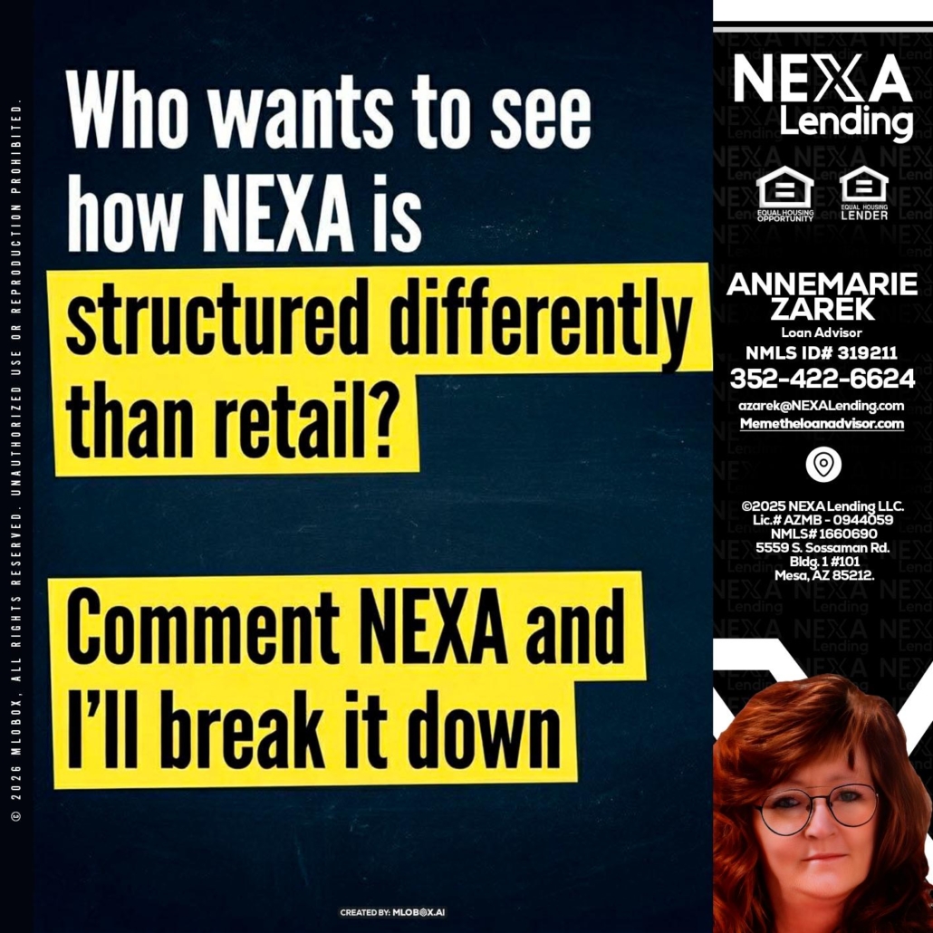 Hi, my name is AnneMarie Zarek. I’m a Loan Officer with NEXA Lending LLC., offering personalized mortgage solutions, fast customized quotes, great rates and service with integrity.